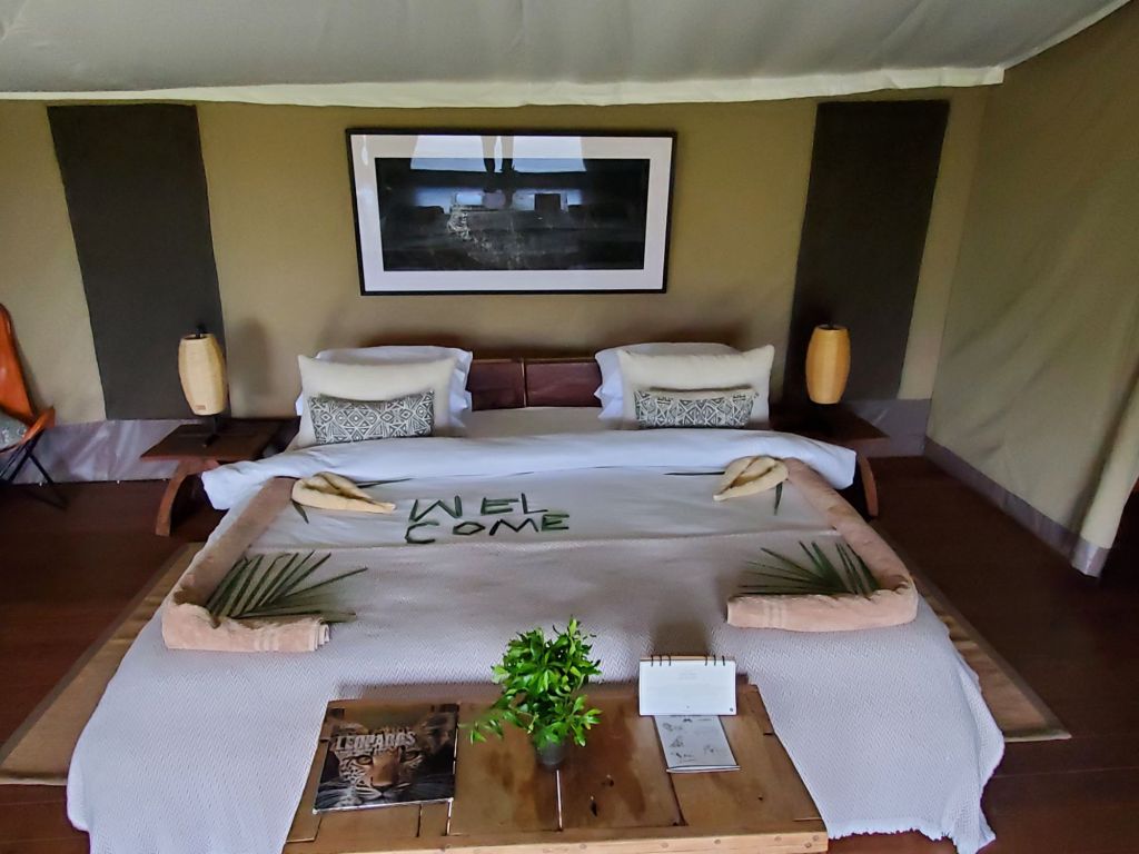 After 8 hours of bumpy ride on our third day at the safari, I decided to stay at the camp instead of joining Sean in an evening safari. We had left Enkawa camp at 6:15 in the morning after witnessing a gorgeous sunrise. We rode all the way to Mara river to see a glimpse of the great migration of animals crossing the river. We saw some dramatic escapadse as I wrote on one of my previous blogs. We waited for hours to see a leopard and finally came back to eat a late lunch after 2:30 pm. Caleb, our wonderful driver and guide, turned to us with his brilliant smile and said, “So, should we go out again at 4:30?” My enthusiastic husband said an enthusiastic ‘sure!’ The other couple in the van also committed to the 4:30 safari to see a sunset in the savanna. I declined to get on that van again. My back declined. Instead, I decided to spend the evening enjoying the vastness in front of my very own glamorous tent.