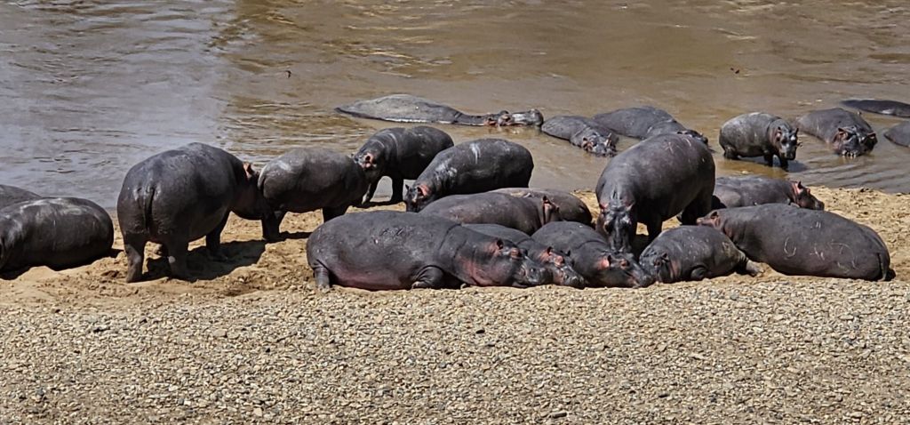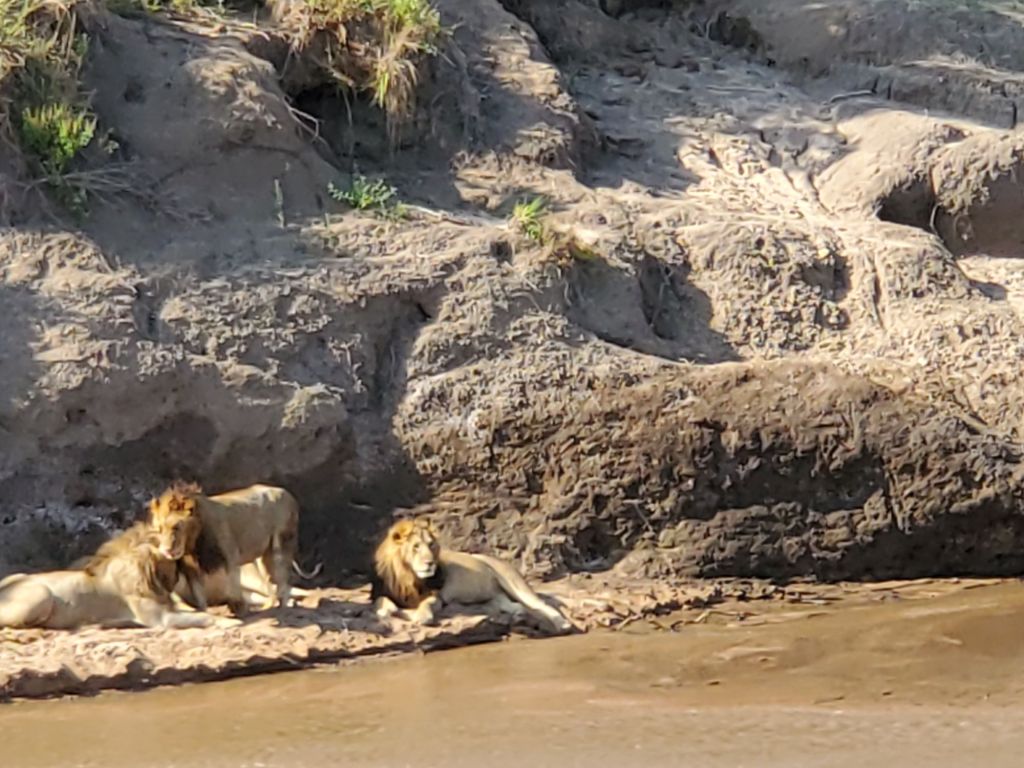 The first day we checked into the camp, we saw three wildebeests resting under a tree right in front of our camp. That was a magical moment too till we realized that they come there every day looking for shade during the heat of the day. We became used to their presence, but had never seen zebras that close. When Caleb and Wilson, our driver and spotter, picked us from the airstrip in Mara, they said they will take us on a safari tour before taking us to the Enkewa camp. Within a few minutes we saw a male ostrich prancing not to far from us. We whipped our binoculars out to see the deep pink color of this hindside and his legs. Male ostriches, we were told, turn pink when they look for a mate. Right after that we saw herds of wildebeests and zebras. I remember that moment being full of wonder. We had never seen anything like this before. The next day, however, herds of wildebeests, zebras, topis. antelopes, wild buffaloes, and even families of warthogs would become commonplace. While we appreciated seeing them, we would consider them part of the landscape as we saw animals that did not make them as easily accessible as these others, like lions, elephants, jackals, serval cats, rhinos, cheetas, leopards….